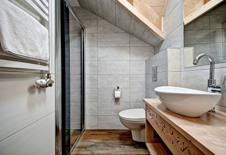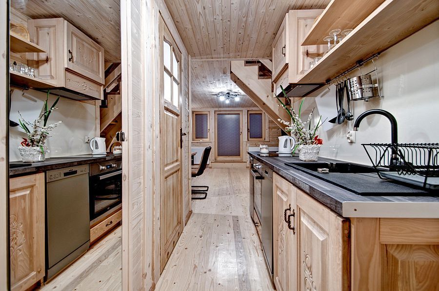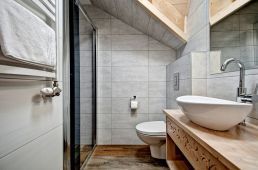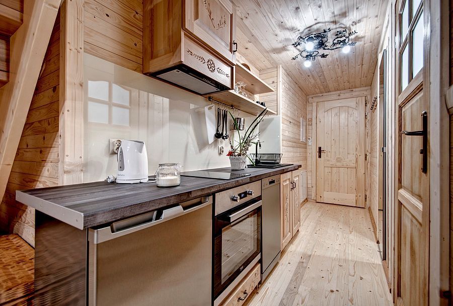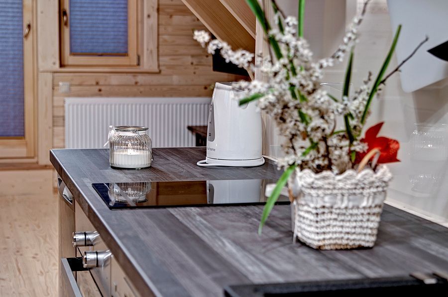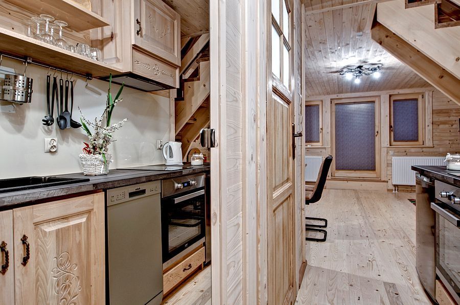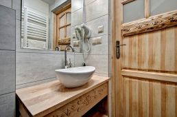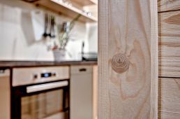 Jest to najmniejszy z apartamentów. Składa się on z antresoli w której są trzy łóżka pojedyncze oraz z salonu z w pełni wyposażoną kuchnią oraz rozkładaną kanapą. Położony na drugim piętrze. Jest w nim jedna łazienka. Proszę zwrócić uwagę, że jest w nim też duży skos.