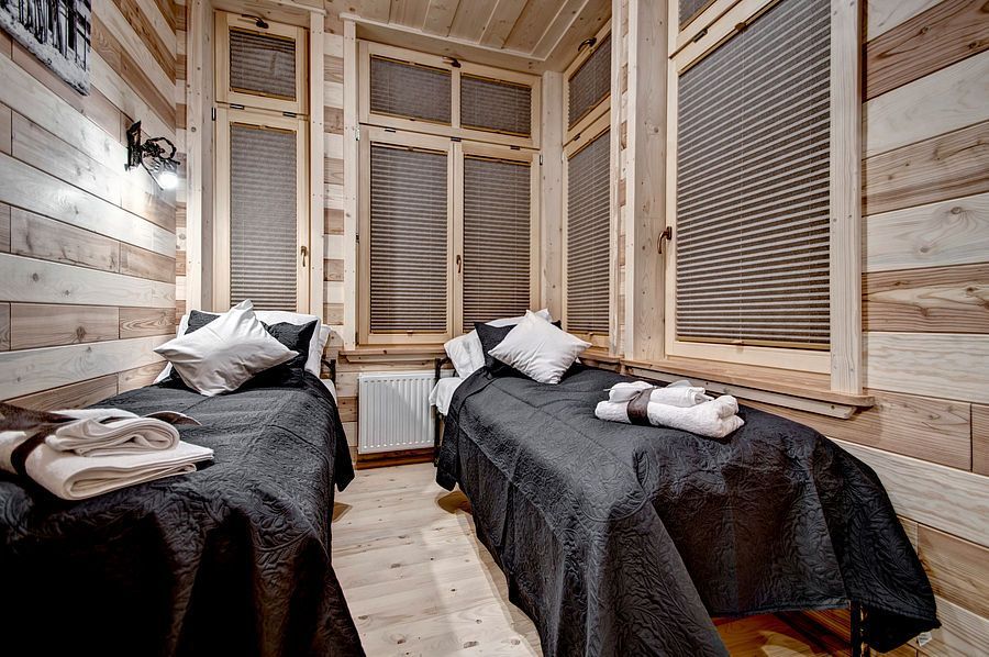 W jednej sypialni znajduję się łóżko małżeńskie a w drugiej dwa pojedyncze. W kuchni jest też rozkładana kanapa.