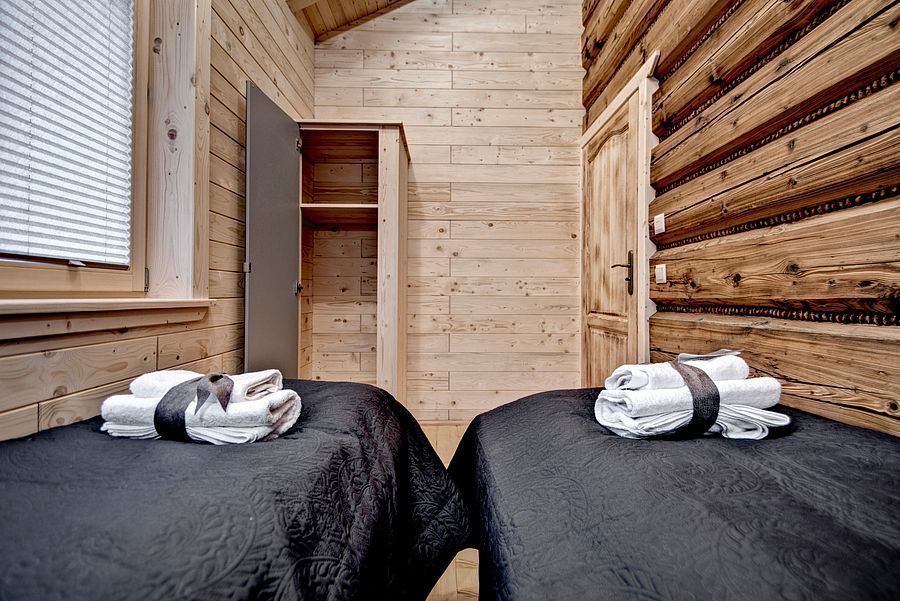 W jednej sypialni znajduję się łóżko małżeńskie a w drugiej dwa pojedyncze. W kuchni jest też rozkładana kanapa.