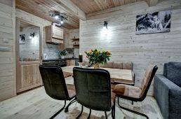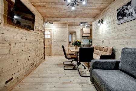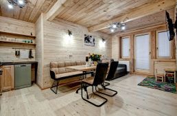 Apartament jednopoziomowy z jedną sypialnią oraz jedną łazienką. Znajduje sięw nim także w pełni wyposażona kuchnia. Położony na pierwszym piętrze. Przeznaczony maksymalnie dla 4 osób. W sypialni znajduje się jedno łóżko małżeńskie, a w kuchni rozkładana kanapa.