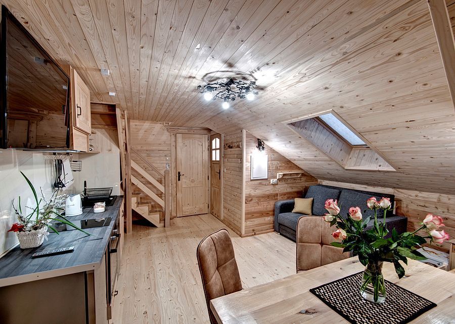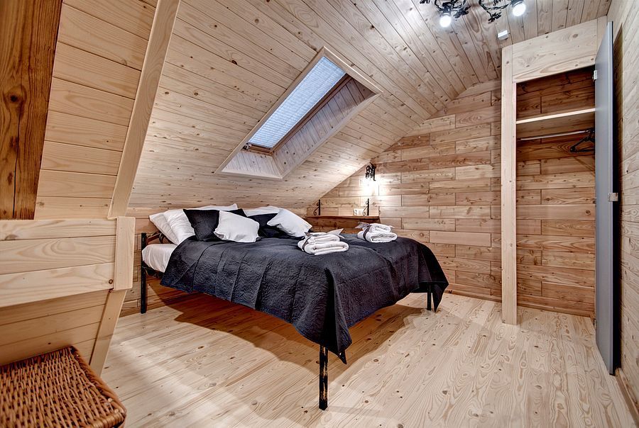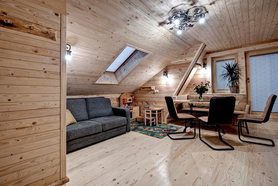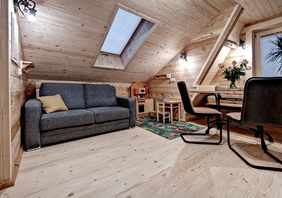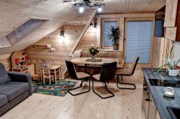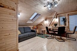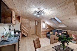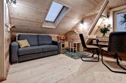 Apartament ekonomiczny ze skosami, z jedną sypialnią oraz antresolą i rozkładaną kanapą max 6 osób