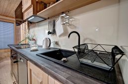 Apartament z jedną sypialnią oraz z drugą mniejszą w postaci antresoli, z jedną łazienką. Znajduje się on na drugim piętrze. Kuchnia jest w pełni wyposażona, Przeznaczony maksymalnie dla 6 osób. W sypialni jest jedno łóżko małżeńskie, w antresoli dwa pojedyncze oraz rozkładana kanapa w kuchni.
