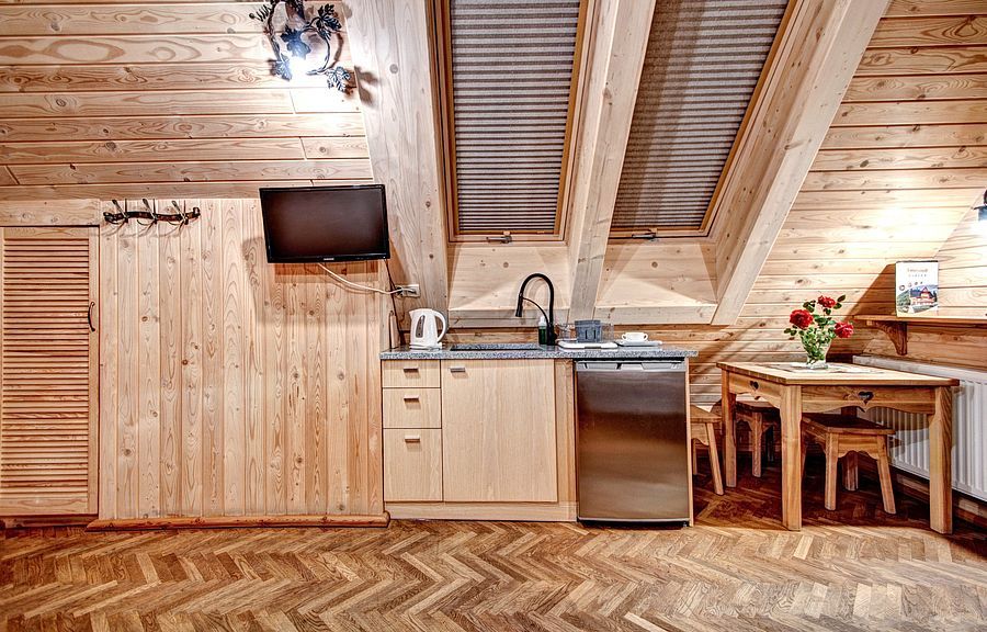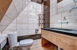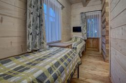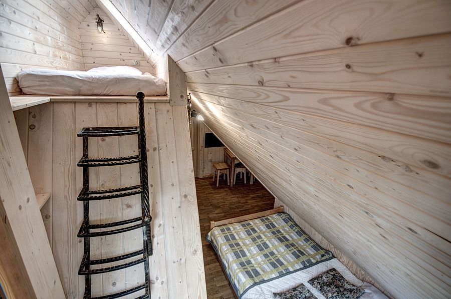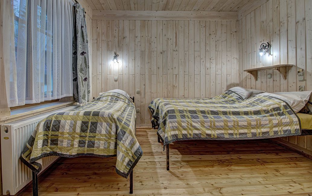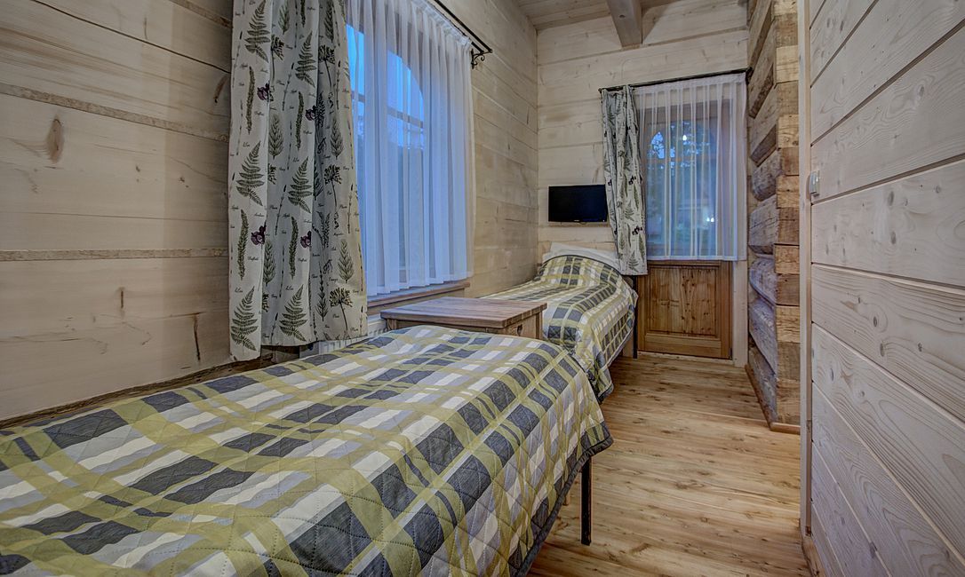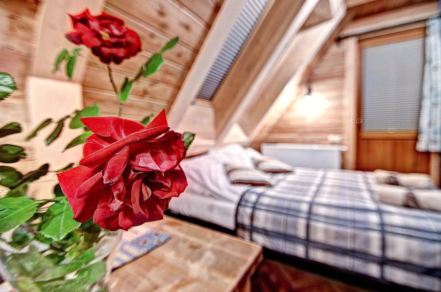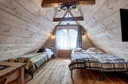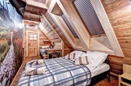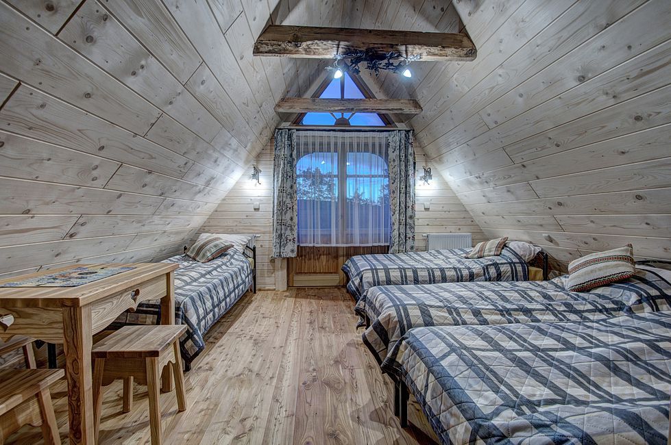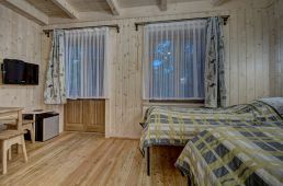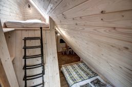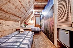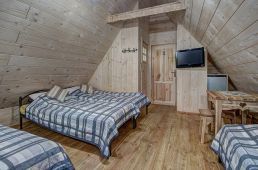 Pokoje na drugim piętrze ( zdjęcie numer 20,21,22,24,25, na wycieczce wirtualnej można je obejrzeć są to nr 16,17) są bardzo małe dwusobowe ( jest w nich możliwość dostawki), z dużą ilością skosów. W związku z tym, pobyt w nich jest liczony w niższej cenie.